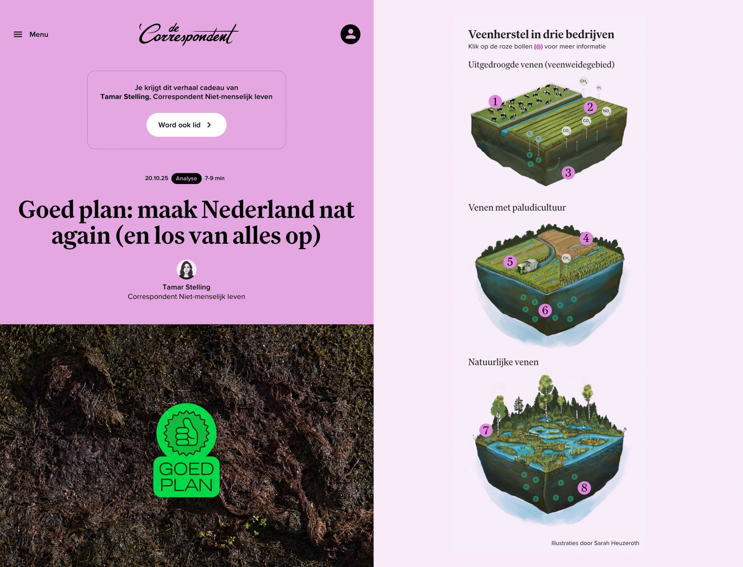 In einem aktuellen Beitrag der Wissenschaftsjournalistin Tamar Stelling im niederländischen Magazin De Correspondent sind meine Moor Illustrationen als interaktive Grafiken eingebunden: Wenn man mit der Maus über die Zahlen der Grafiken wandert erhält man nähere Informationen zu einzelnen Themen.